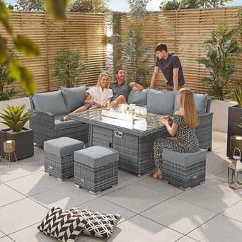 Nova Cambridge Corner Dining Set Fire Pit Table Left Hand Grey